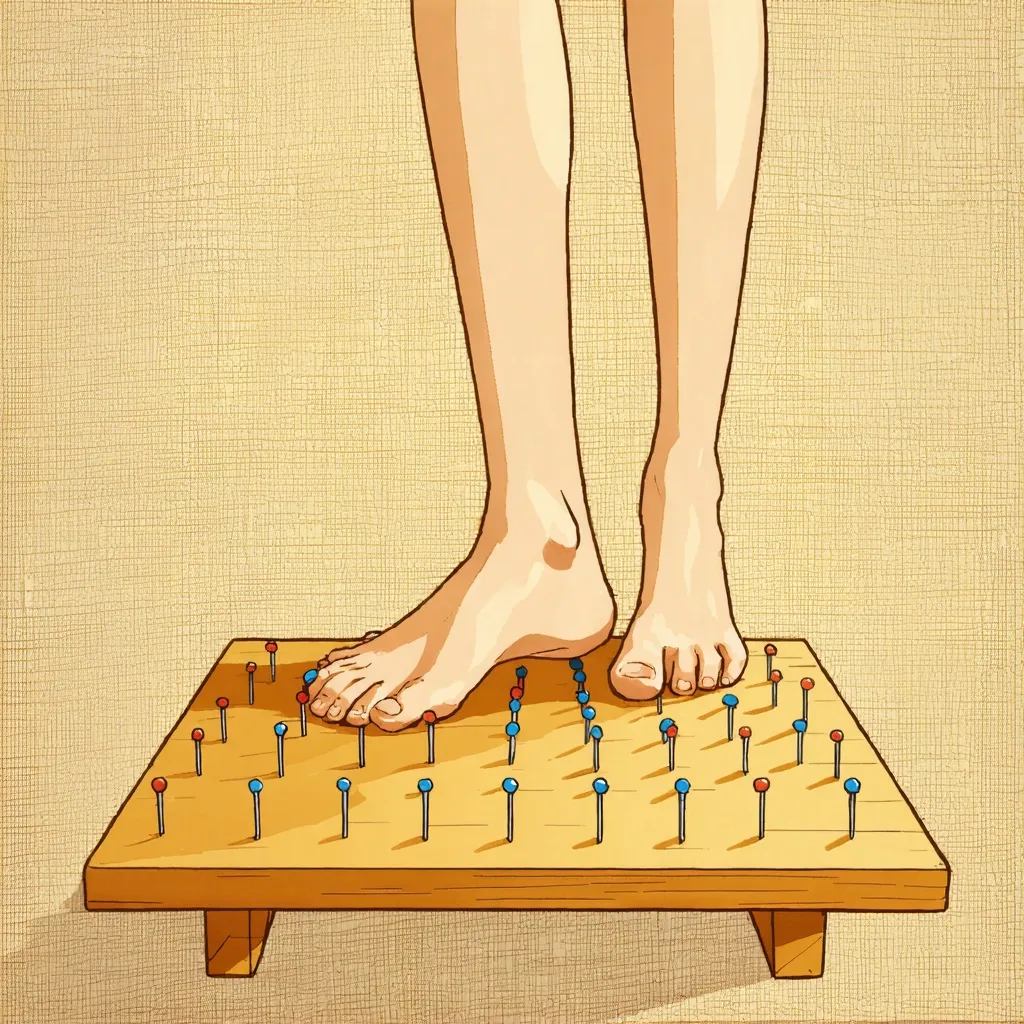 Гвоздестояние — это практика стояния на доске с острыми металлическими гвоздями, которая применяется в йоге, медитации и альтернативной медицине. Этот метод направлен на улучшение кровообращения, снятие стресса и стимуляцию энергетических точек на ногах и спине.
